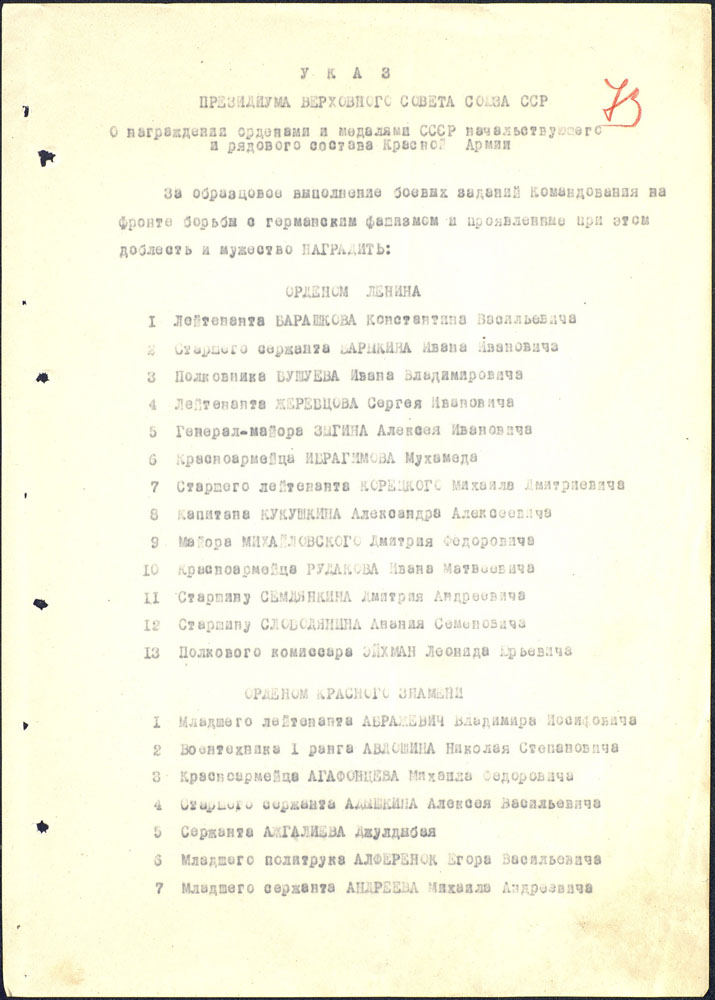 А вот еще один кавалер высшего советского ордена, тоже один из первых. Указ о награждении датирован 31 августа 1941 г.