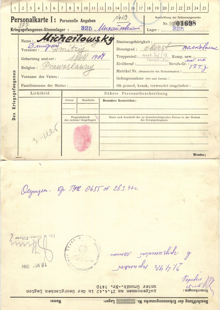 Карточка военнопленного: