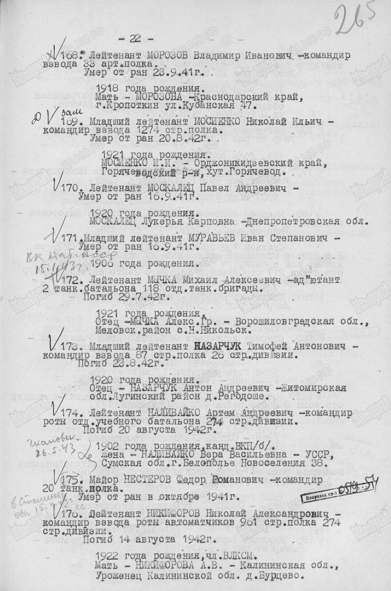 В документах на "ОБД Мемориал" он значится умершим от ран в октябре 1941г.