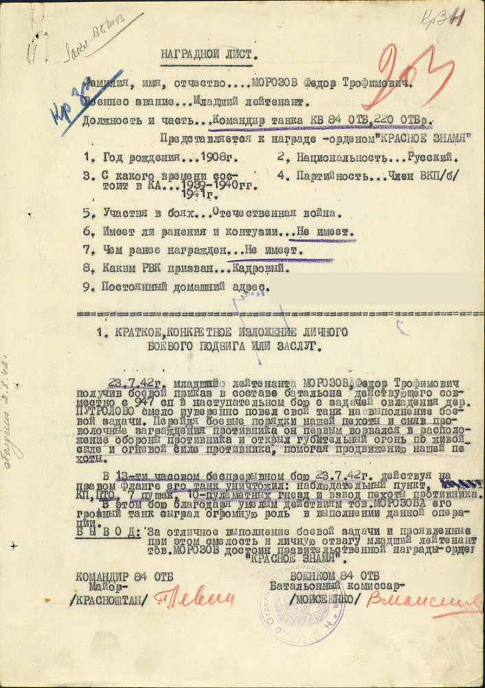 viewtopic.php?f=18&t=252Экипаж танка КВ 84-го танкового батальона 220-й танковой бригады младшего лейтенант Ф.Т.Морозова.