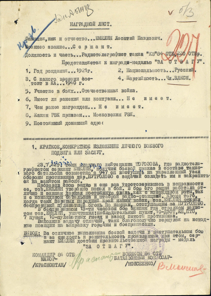 Радиотелеграфист танка сержант Емелин Леонтий Павлович. Погиб 21 января 1944 г.