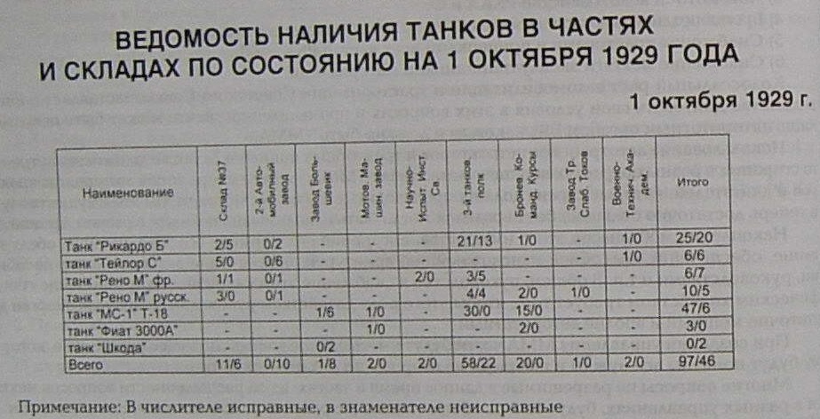 Ранее встречалась информация, что к концу 1928г в РККА имелось 33 лёгких танка "Рено". Получается, что к октябрю 1929г 20 из них списали?