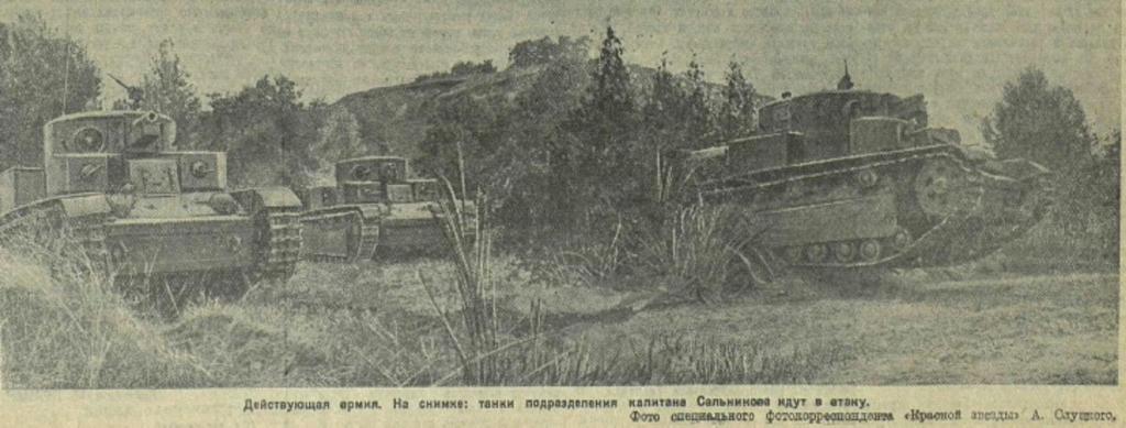 Газетный снимок опубликован в номере 22 августа, но сделан очевидно в середине или даже начале августа. Как бы не единственный появившийся в печати снимок Т-28 на фронте летом 1941. Фотокорр Слуцкий работал под Киевом, а в подписи говорится про подразделение капитана Сальникова - это как раз 2-й батальон 23 тп.