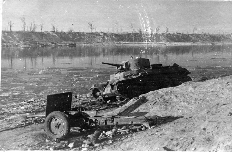 Невская Дубровка. Танк Т-26 в ожидании переправы. Ноябрь 1941.