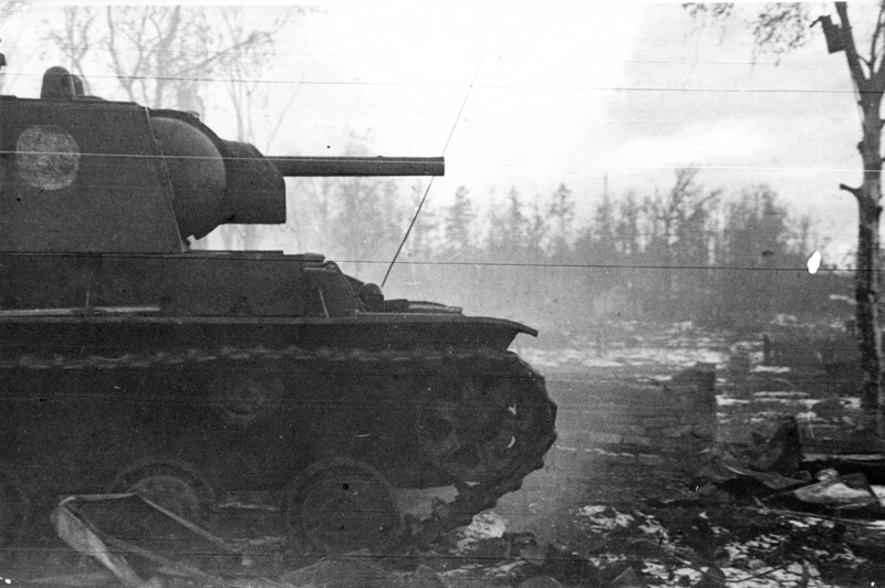 Танк КВ-1 у переправы через Неву. Октябрь 1941.