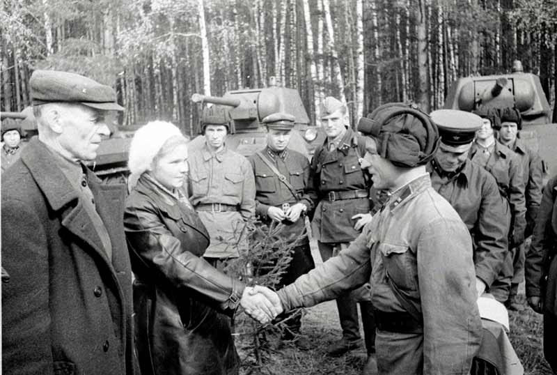 http://victory.rusarchives.ru попалась пара фотографий, которые можно уверенно атрибутировать, как вручение матчасти 33-й танковой бригаде.