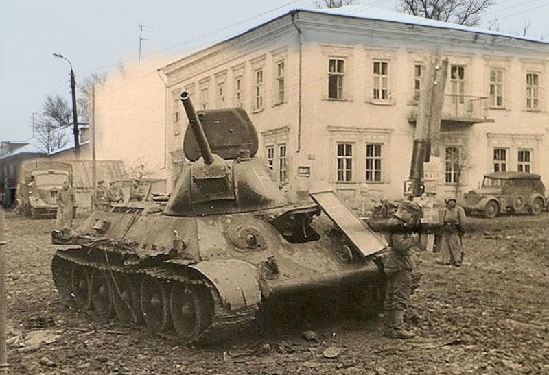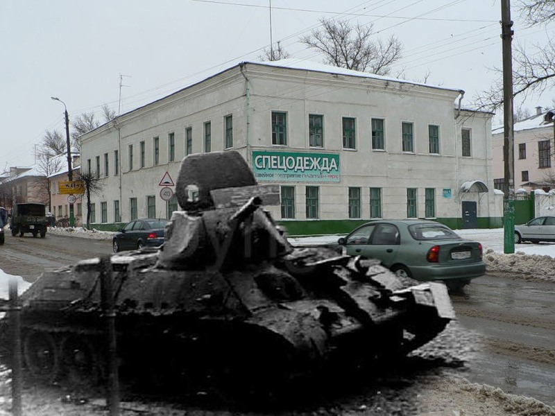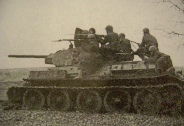 На фото - Т-34 одной из групп, направленных Катуковым на разведку в Орёл. По всей видимости - это машина из 1-й группы Гусева. Десантом на ней сидят бойцы с СВТ. А по воспоминаниям Катукова курсанты Тульского оружейно-технического училища были вооружены в основном самозарядными винтовками СВТ.