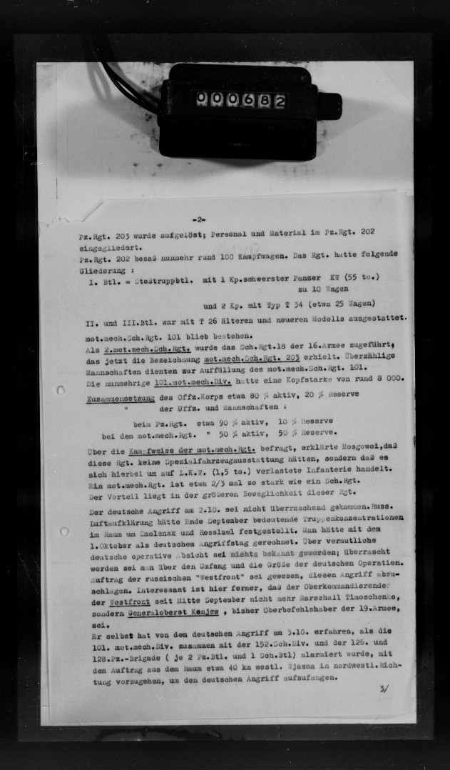 текст длинный, все переводить не стоит- там много воды. Наиболее скандальные вещи- это количество танков в 202 ТП к началу октября. Мозговой дает следущее: 3 батальона, в "тяжелом" батальоне: 10 КВ и 25 Т-34 ! Причем он не просто выкладывает голые цифры, но и обьясняет: де, одна рота КВ- 10 танков и две роты Т-34- примерно 25 танков. Ну т.е. могло быть и 20 Т-34, но не меньше.