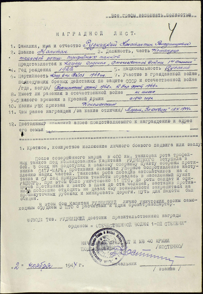 Еще одна интересная деталь - наградные документы, на обоих офицеров подписаны Замкомандира БТиМВ по артиллерии - полковником ПИСАРИХИНЫМ