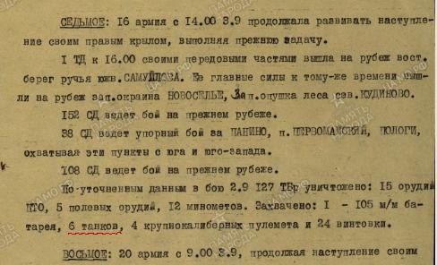 «В результате проведенной операции танковый парк армии обогатился трофейными машинами, требующими восстановления армейскими ремонтными средствами. Ремонт боевых машин, в основном, закончен, танки готовы вступить в строй.