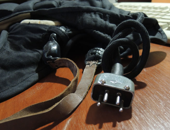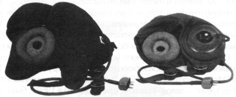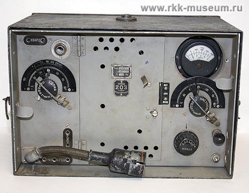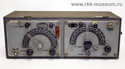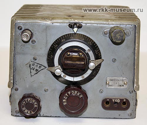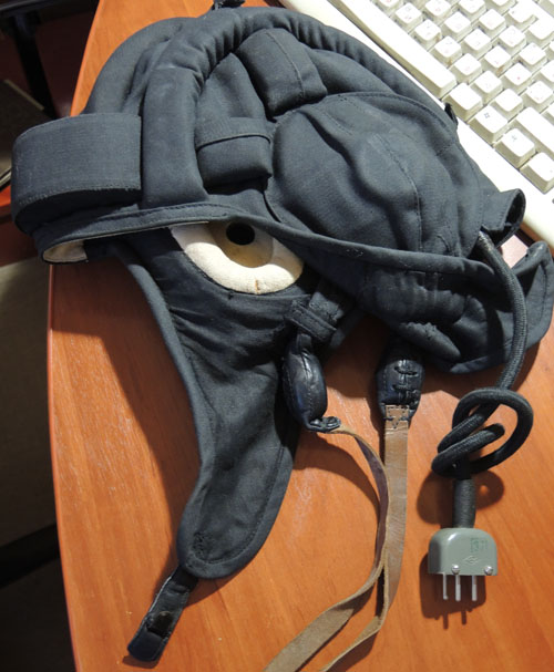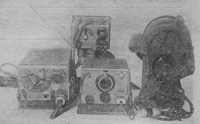 Общий вид радиостанции 9-Р со шлемофоном радиста в комплекте. Обратите внимание на чашки головных телефонов и соединительную разъемную колодку круглого сечения.