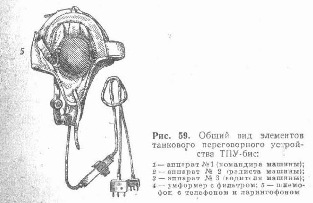 В комплект гарнитуры танкистского шлемофона радиостанции 9РС входили (из наставления по РС 1946 г.): телефоны ТА-2, ларингофоны ЛА-3, шнур с разъемной колодкой, оканчивающийся двух и трехштырьковыми вилками. При работе с радиостанцией через ТПУ обе вилки подключались к ТПУ, а без ТПУ - вилки включались в соответствующие разъемы на правой боковой стенке радиостанции.
