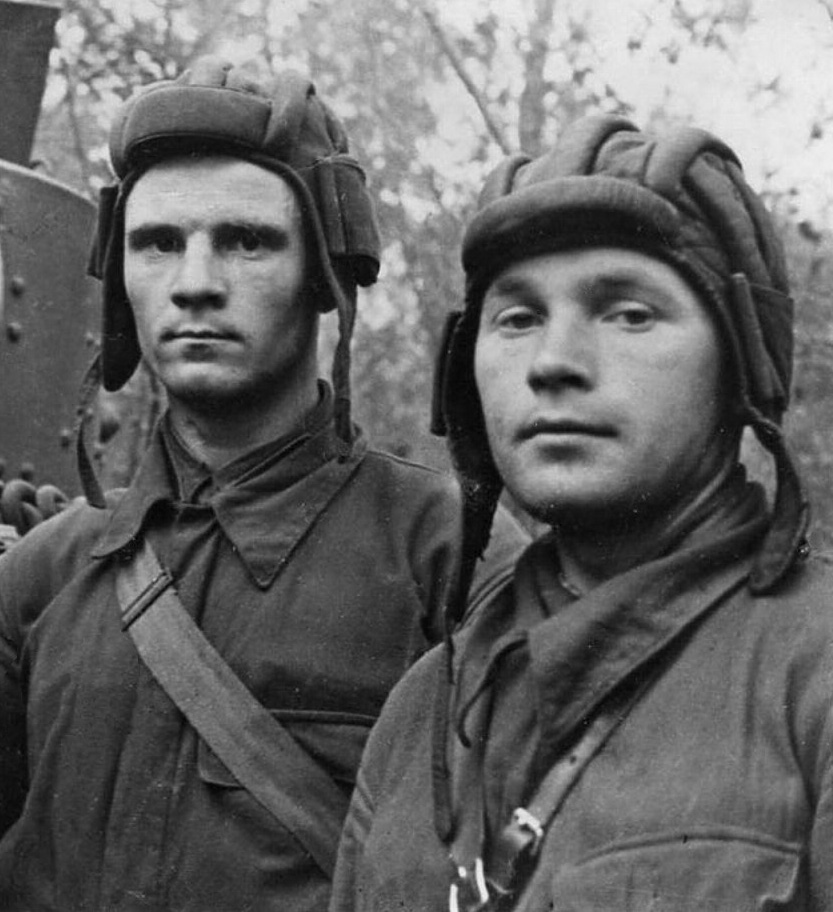 Скорее всего, на фотографии запечатлен командир роты тяжелых танков 1-го танкового батальона 121-й ТБР старший лейтенант Поддубский Максим Николаевич с, вероятно, командирами танков его роты.