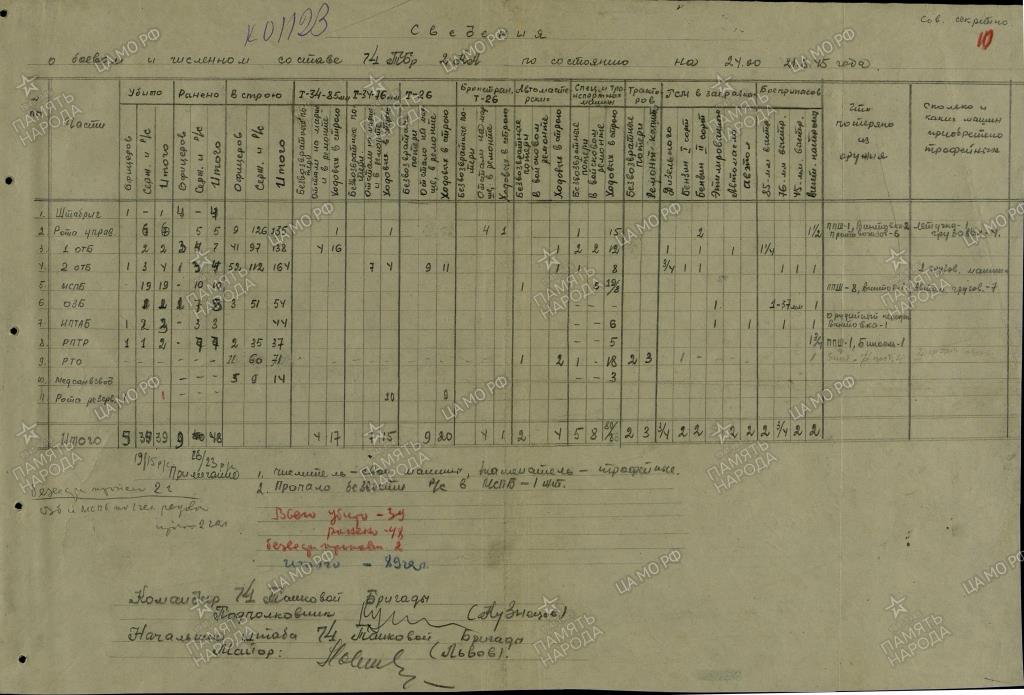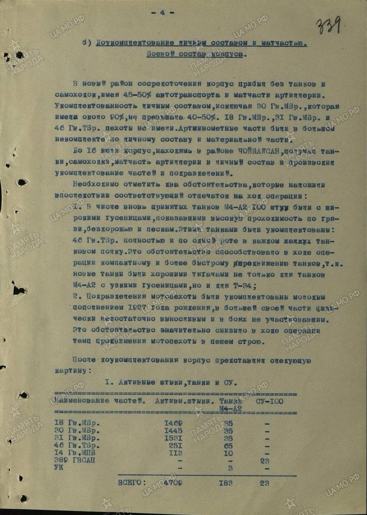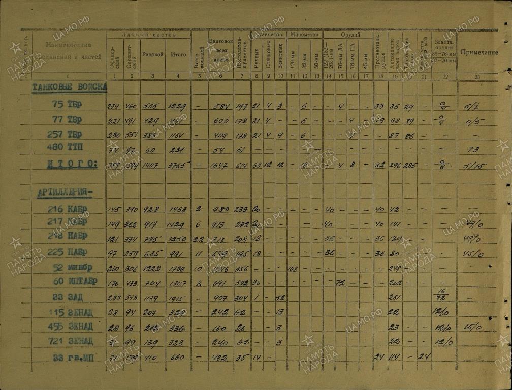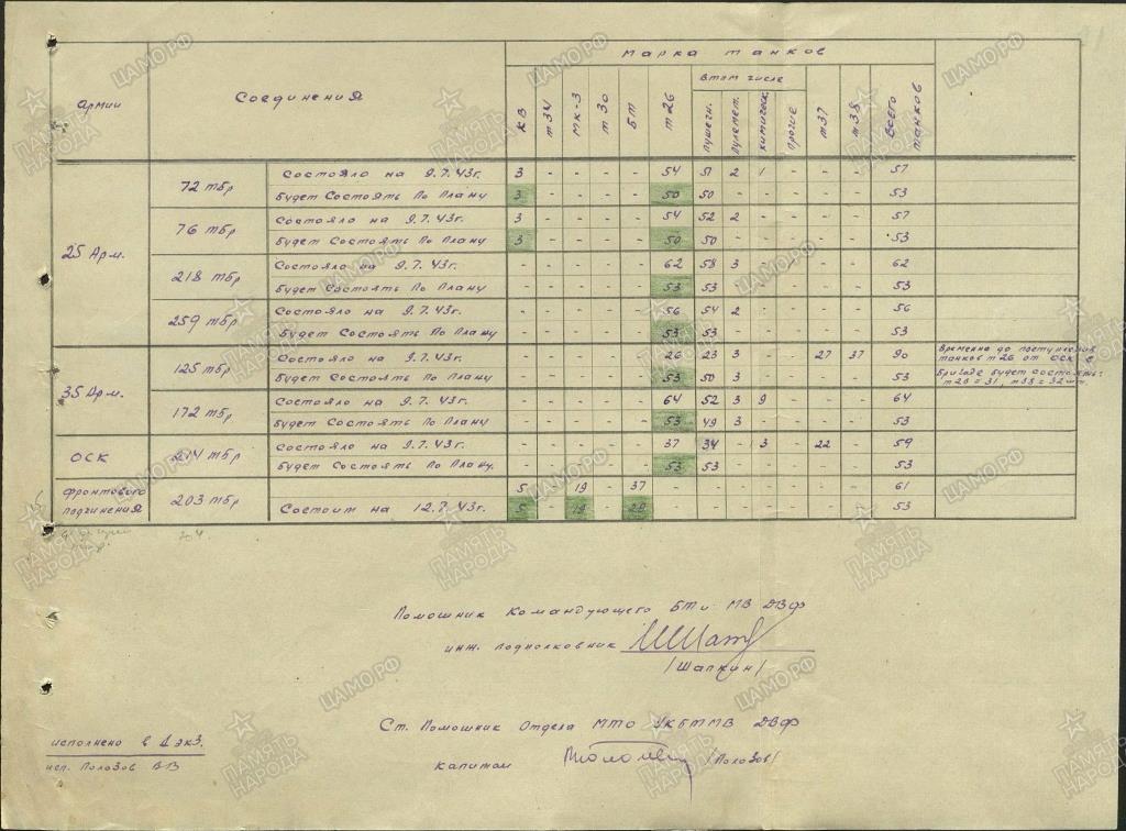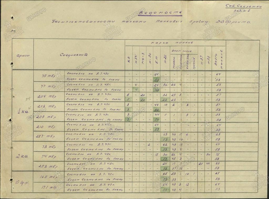 Интересная картина получается. В ноябре 1942г в составе частей и соединений фронтового подчинения ДВФ числились две ТБР - 203-я и 214-я. В них был 91 танк - 5 тяжёлых, 20 средних и 66 лёгких. Ну, последняя бригада (214-я) периодически то в состав ОСК на Сахалине входила, то напрямую ДВФ подчинялась. Хотя с Сахалина никуда не уезжала. И были в ней всегда лёгкие танки (в основном Т-26 из ОТБ 79-й сахалинской СД. На июль 1943г - 37 Т-26). А вот с 203-й бригадой картина интересней. Похоже, что именно в ней на 20.11.1942г были сосредоточены те самые 5 тяжёлых и 20 средних танков (+ какое-то количество лёгких). А что мы наблюдаем на июль 1943г? В 203-й бригаде имеются 5 КВ, 19 МК3 и 37 (а позднее - 28) БТ. Ну с КВ и БТ - понятно - были в 42-м, остались и в 43-м. А вот куда делись "средние" танки и откуда взялись "Валентайны"? Не могло ли быть так, что в ноябре 1942г лёгкие МК3 статисты засчитали за средние? (разница в одну машину объяснима - находилась в ремонте или передана в другую в/ч. То же самое и с лёгкими танками - 37 Т-26 в 214-й ТБР и 37 БТ - в 203-й дают в сумме 74 машины. разница в 8 машины допустима - снова либо ремонт, либо передача в другую в/ч). Кстати, а где формировалась 203-я ТБР? Не в западной ли части СССР (как 204-я, о которой разговор ниже)?