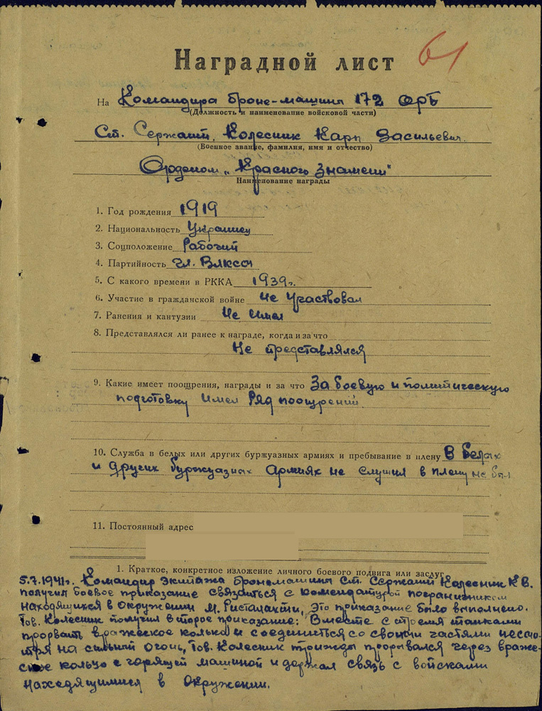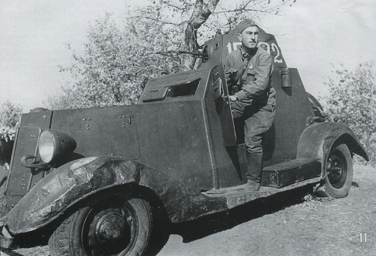 В журнале Мощанского "Трагедия под Уманью" есть фото экипажа бронеавтомобиля БА-10, якобы снятое в июле 1941 г. на Юго-Западном фронте. Поскольку там приведены фамилии членов экипажа (К.В.Колесник, К.И.Грумынский, И.А.Сидоренко), то сейчас не составляет проблем найти их в базах того же "Подвига народа".