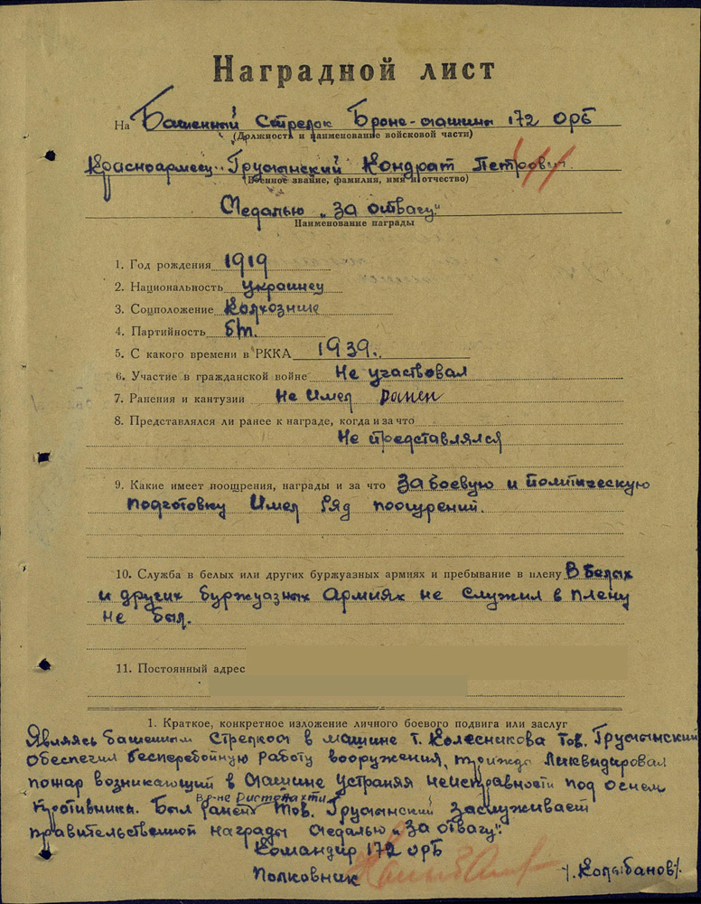 Грумынский К.И. - на самом деле Кондрат Петрович, а машиной командовал старший сержант Карп Васильевич Колесник.