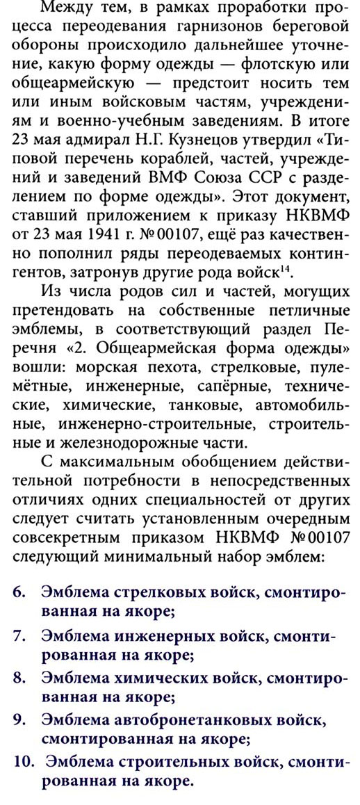 Это все дополнения и изменения, а все было определено в постановлении СНК СССР № 855-364сс от 9 апреля 1941 г. – «О введении формы одежды, знаков различия, принятых в Красной Армии, для личного состава береговой обороны и авиации ВМФ».