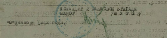 Командир 142-й танковой бригады, приказ НКО № 02461 от 31.08.41 г. И командовал ею якобы до января 1942 г.!
