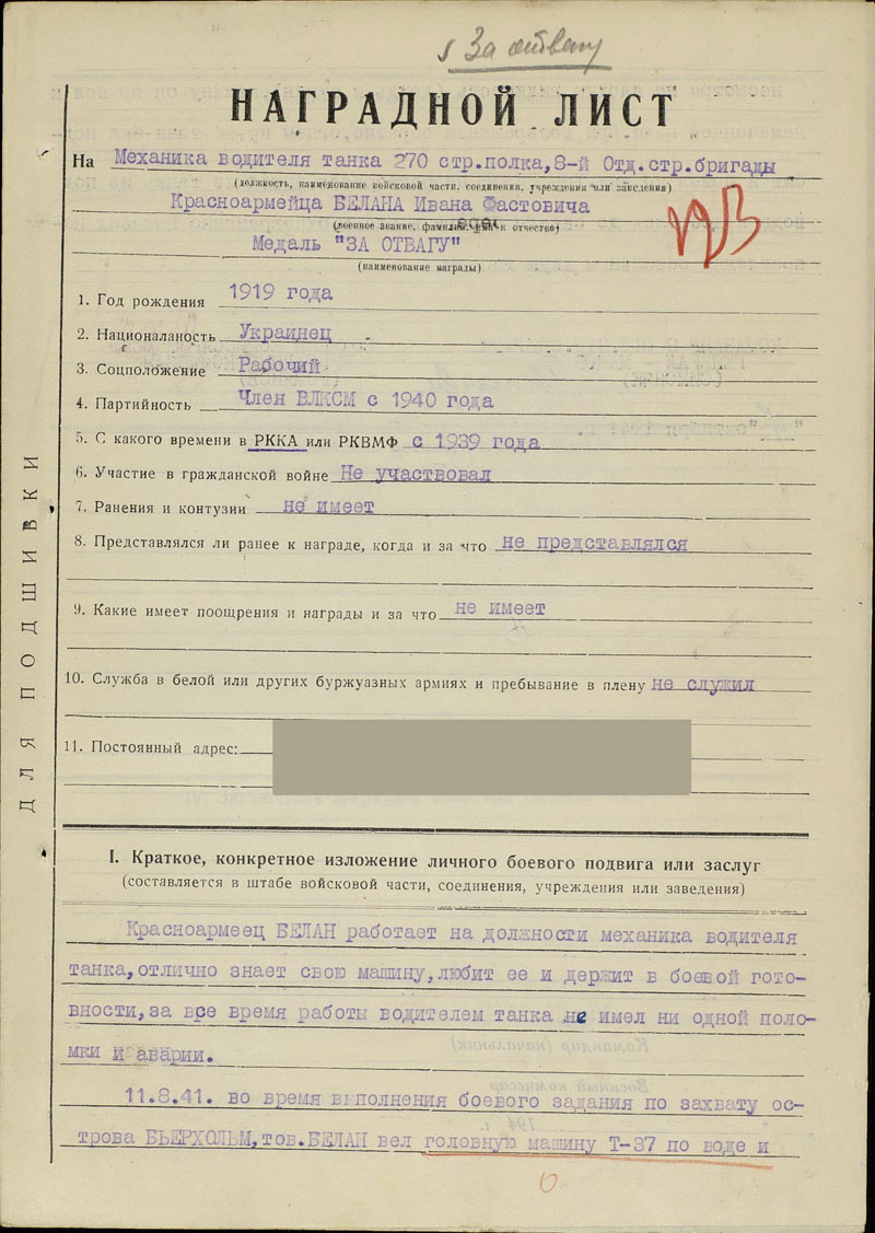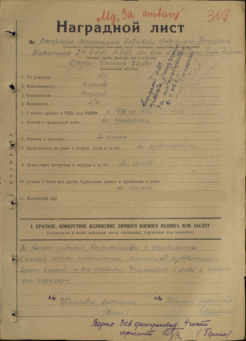 нашел (чисто случайно) наградной на башенного стрелка отд. тб 2-й обм краснофлотца Борейко Эдуарда Ивановича