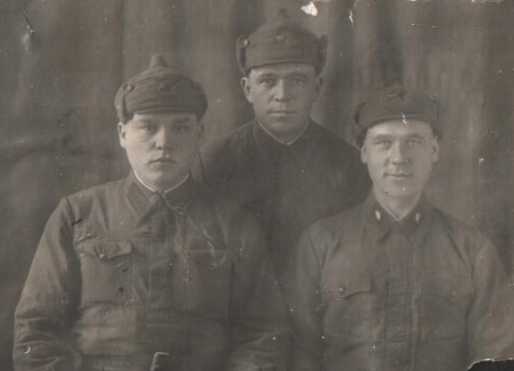В центре - Василий Карпович Наумов из Марийской АССР. Известно, что он служил в 115-м отдельном дивизионе ПТО 13-й стрелковой дивизии в м.Снядово в Белоруссии, в 1941 г. пропал без вести.