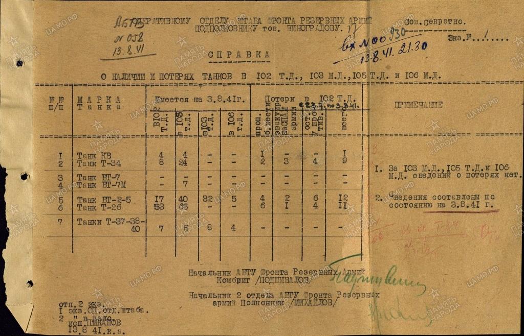 до 1 августа получила кв 6. т-34 47. бт-5 30 машин. т-26 102( получила из 52 тд) т-37/38/40 7.
