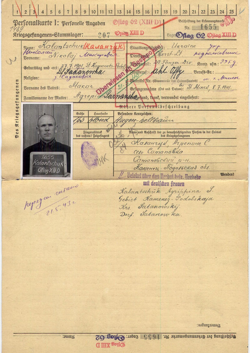 Вот нашел в ОБД карточку военнопленного на начальника штаба дивизии подполковника Каланчука.