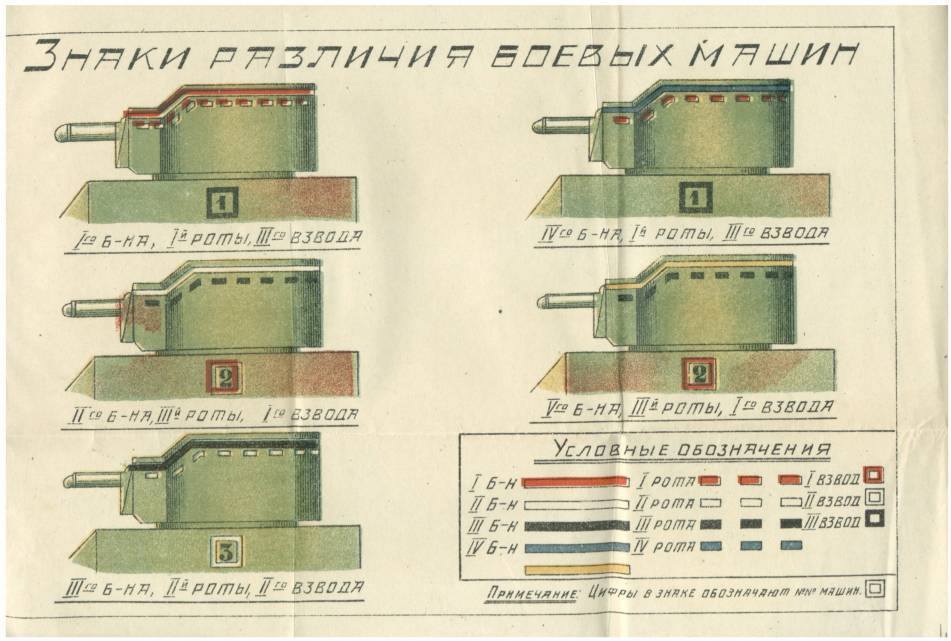 Но ни на одной из подобных картинок я не видел обозначений командирских машин - командира роты, батальона, а может, и полка, если где-то ему полагалась машина с тактическим знаком по штату. Известно ли, какие они должны были нести обозначения?