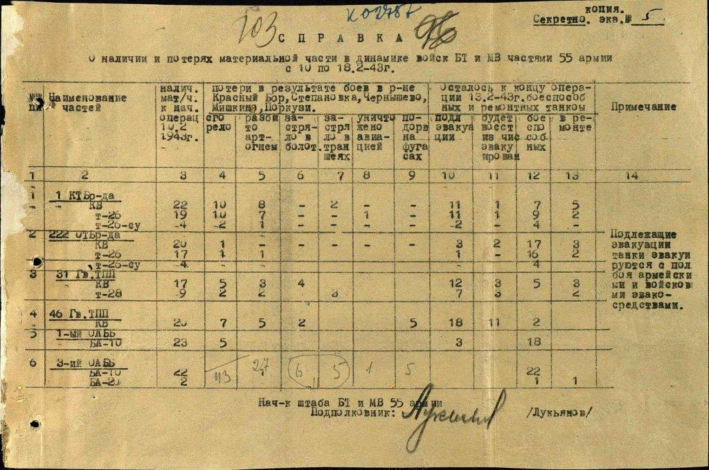 Все восемь с февраля 1943 разом (то есть сразу за просьбой начальника училища к ГАБТУ передать Т-28 и Т-35 на бронепоезда или ДОТы) переходят в графу "требующие капремонта", хотя до этого два числились исправными, а три - требующими среднего ремонта.