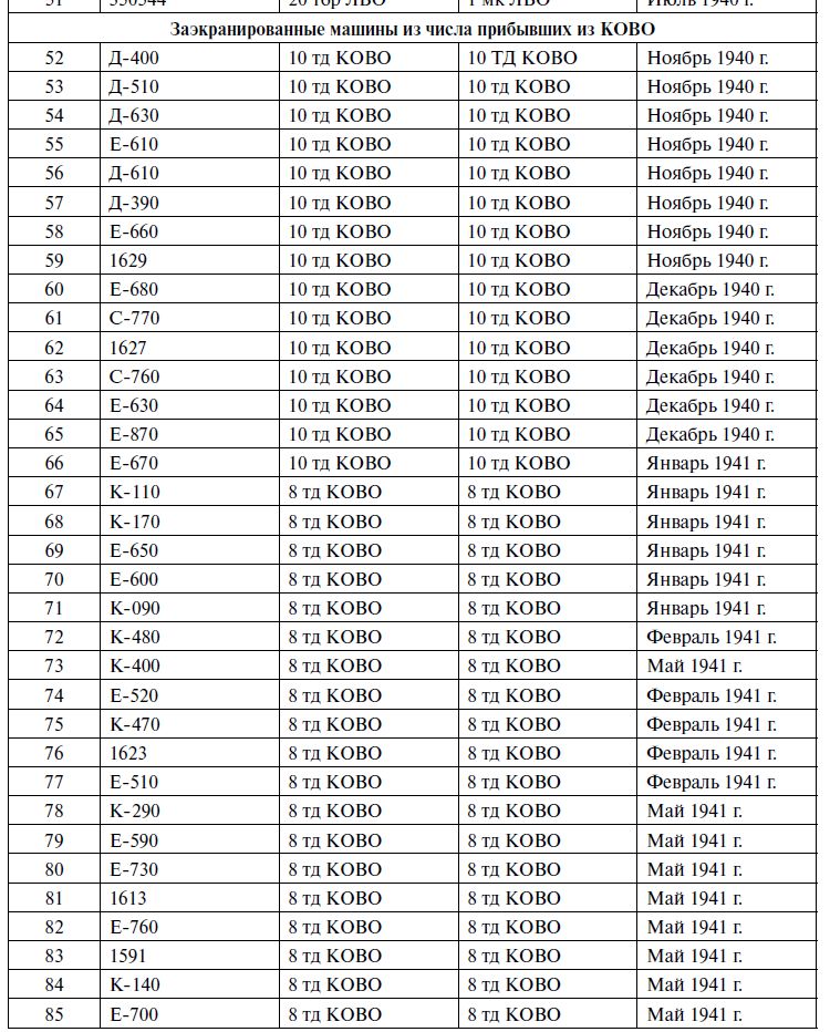 Но список экранированных машин КОВО сообщает нам о том, что там действительно нет поздних шестизначных серийных номеров, но больше половины его составляют машины серий Е и Д, которые тоже оказываются на цементированных корпусах, как я показал выше.