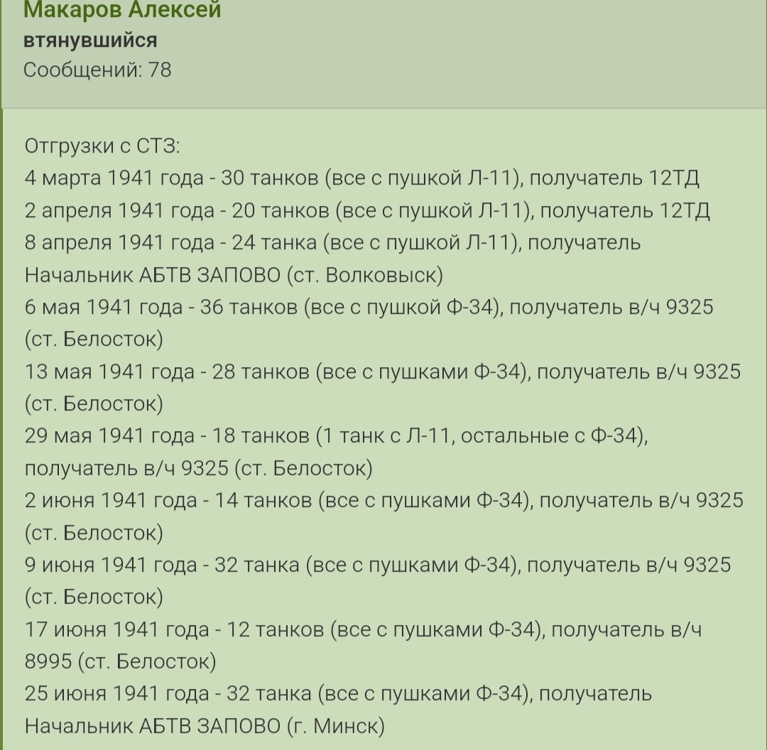 Ему удалось отследить путь двух т-34 прибывших на ленфронт из этого эшелона.